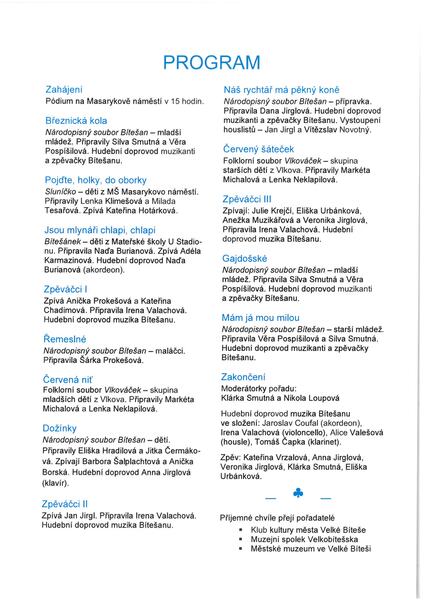 Přehlídka folklorních skupin z Velké Bíteše a okolí.